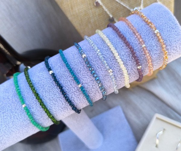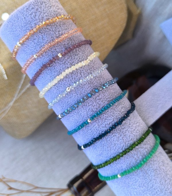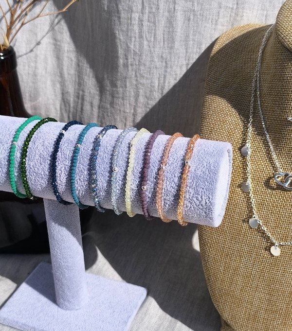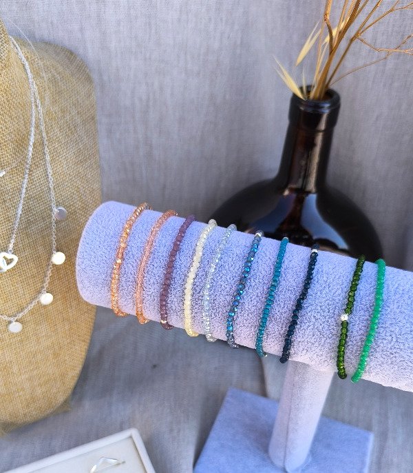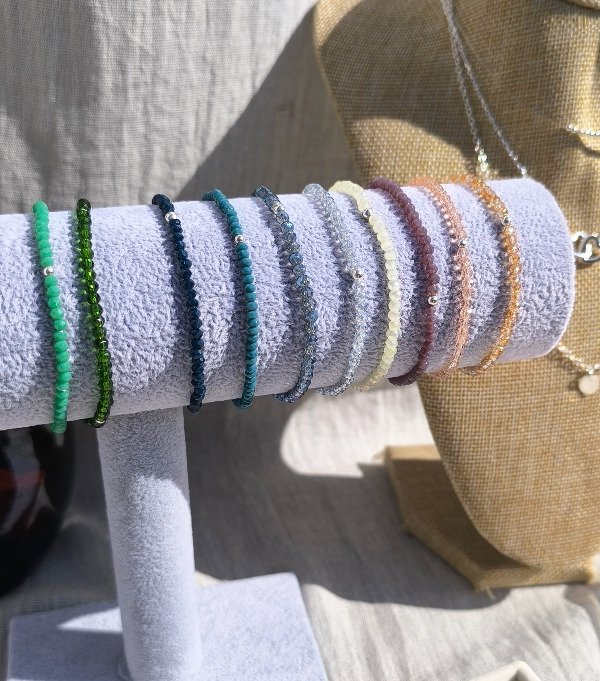 Pulseras elastizadas de Cristales con bolitas de Plata 925